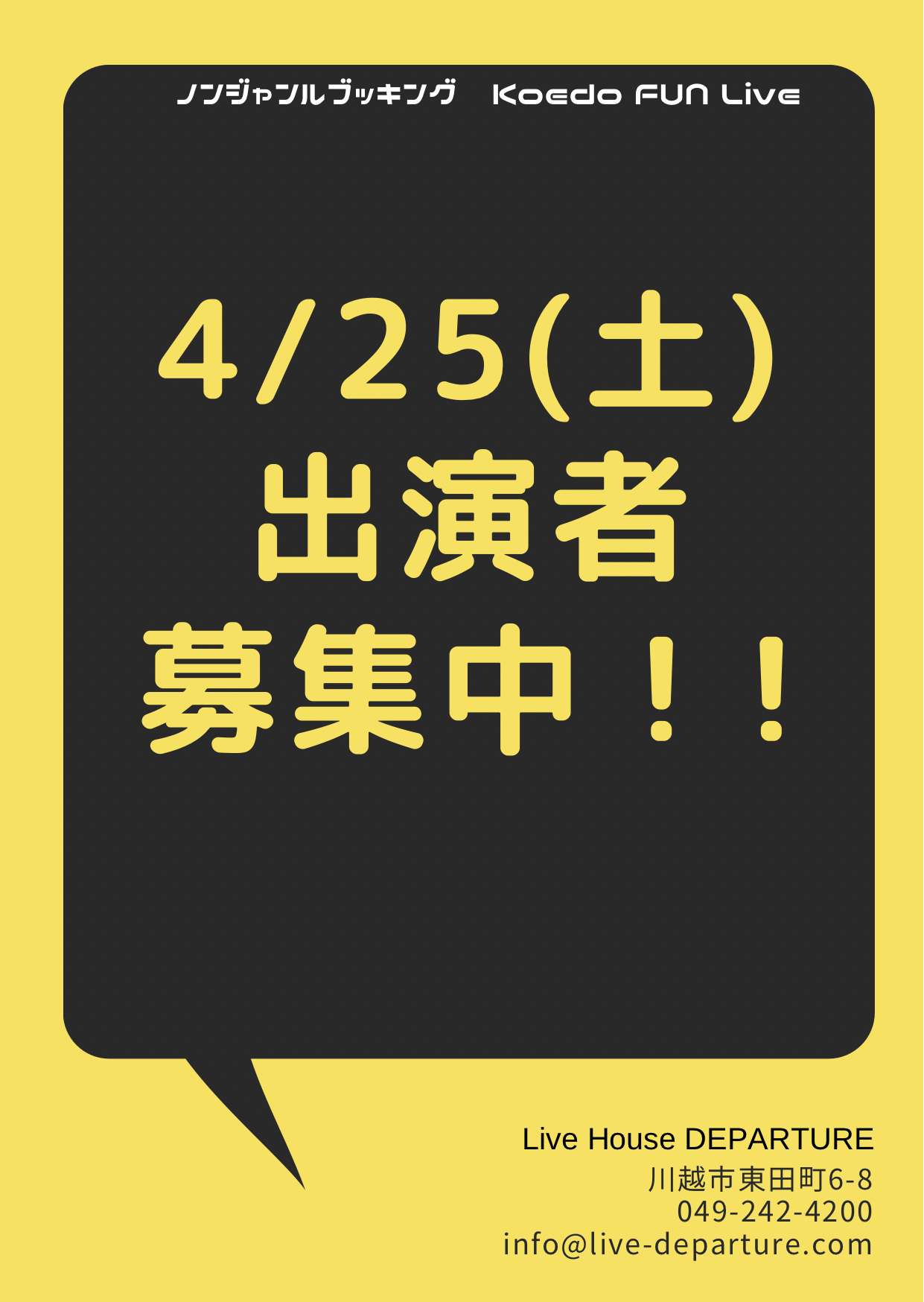 ノンジャンルブッキング「Koedo FUN Live」→ジャンル不問、初心者バンドも歓迎です!