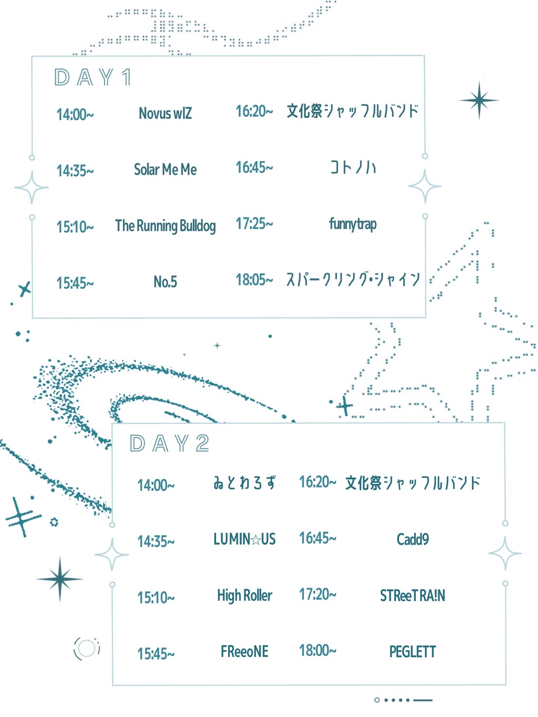 【出演】Novus wIZ/Solar Me Me/The Running Bulldog/No.5/文化祭シャッフルバンド/コトノハ/funny trap/PEGLETT