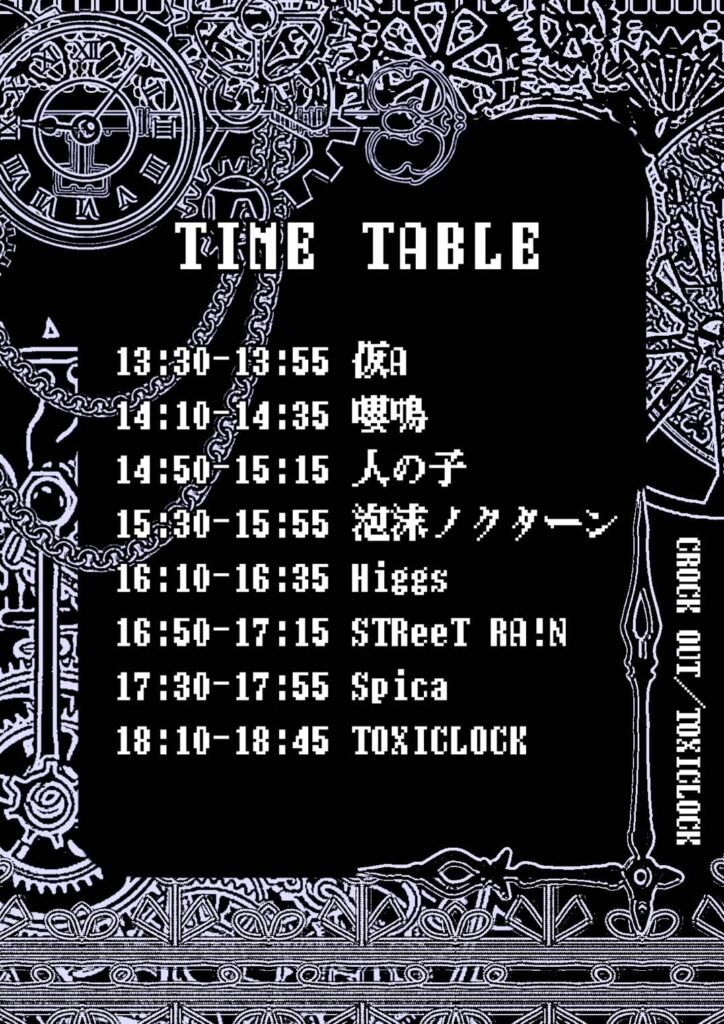 【出演】仮A/嚶鳴/人の子/low fellow/Higgs/STReeT RA!N/Spica/TOXICLOCK